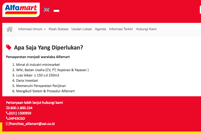 Bisnis. Site requirement of alfamart franchise. Seluruh keperluan transaksi dana, mulai dari isi saldo sampai pembayaran lebih mudah di alfamart, selain lebih mudah ada banyak bonus menanti.