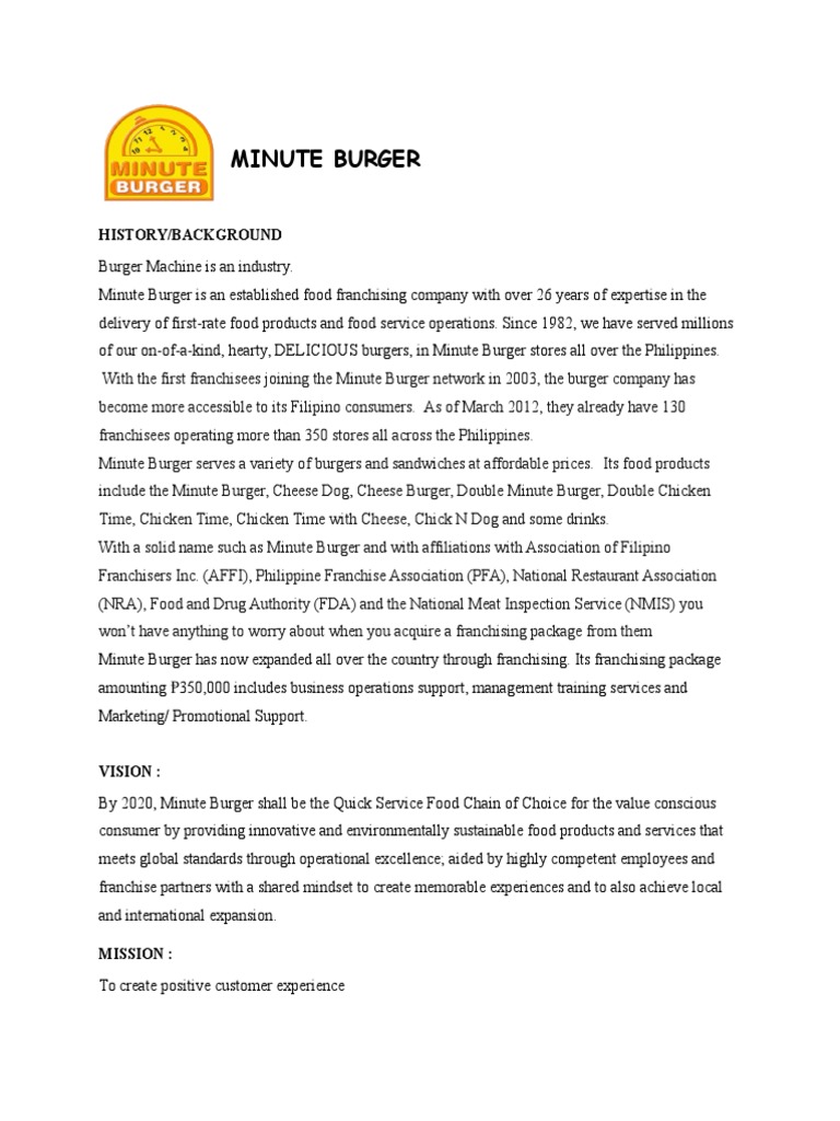 Trik. The ideal minute burger franchisee shares our vision for growing our brand. Disadvantages of the minute burger franchise.