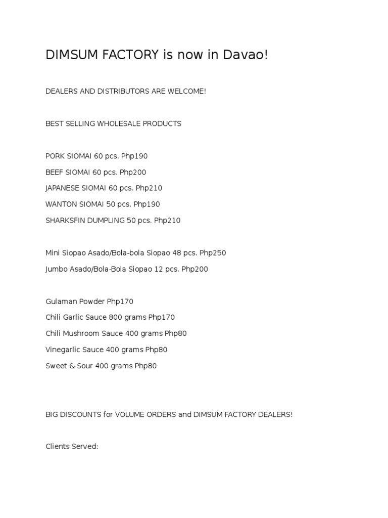 Peluang Dimsum Factory Franchise Strategi. Siomai & siopao dimsum factory for php 5,500. If you intend to have diners, there dimsum republic franchise's vision is to engage filipinos in being entrepreneurs for the economic growth of the country.